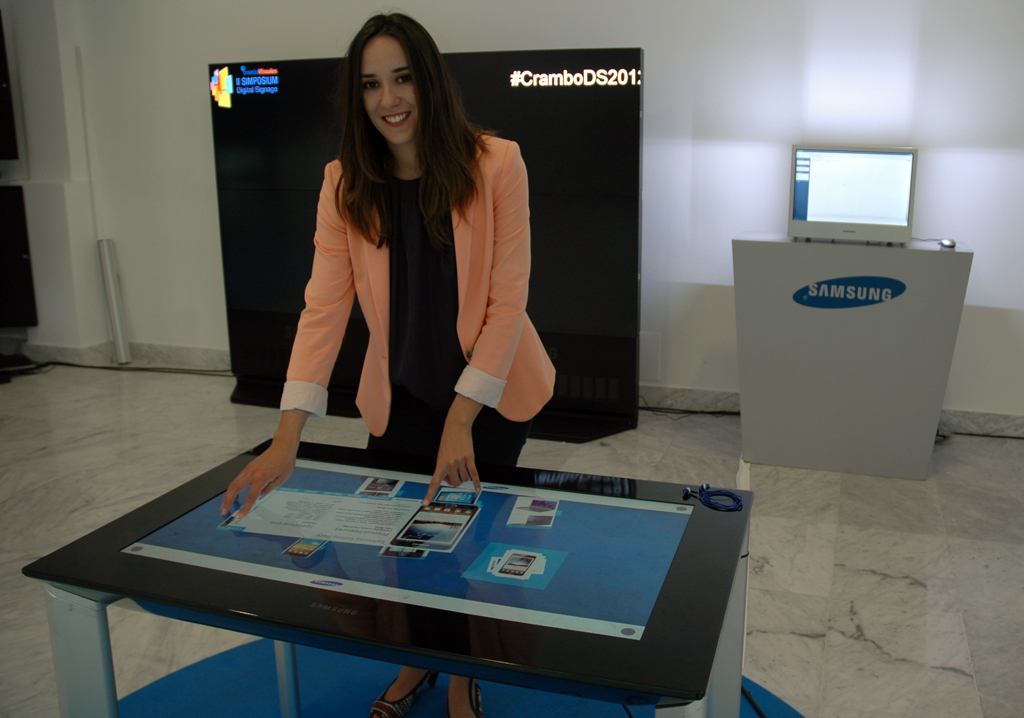 还, la empresa surcoreana Samsung ha llevado la Samsung SUR40, la segunda versión de la mesa táctil Microsoft Surface, el display UD-55A para video wall de 55″ con peana incorporada, el monitor UB-46 para videowalls verticales con tecnología E-LED, la pantalla LED Full HD de señalización NE-32 de 32 pulgadas y un LCD transparente de 22,6″ con el software Magic Info incorporado.