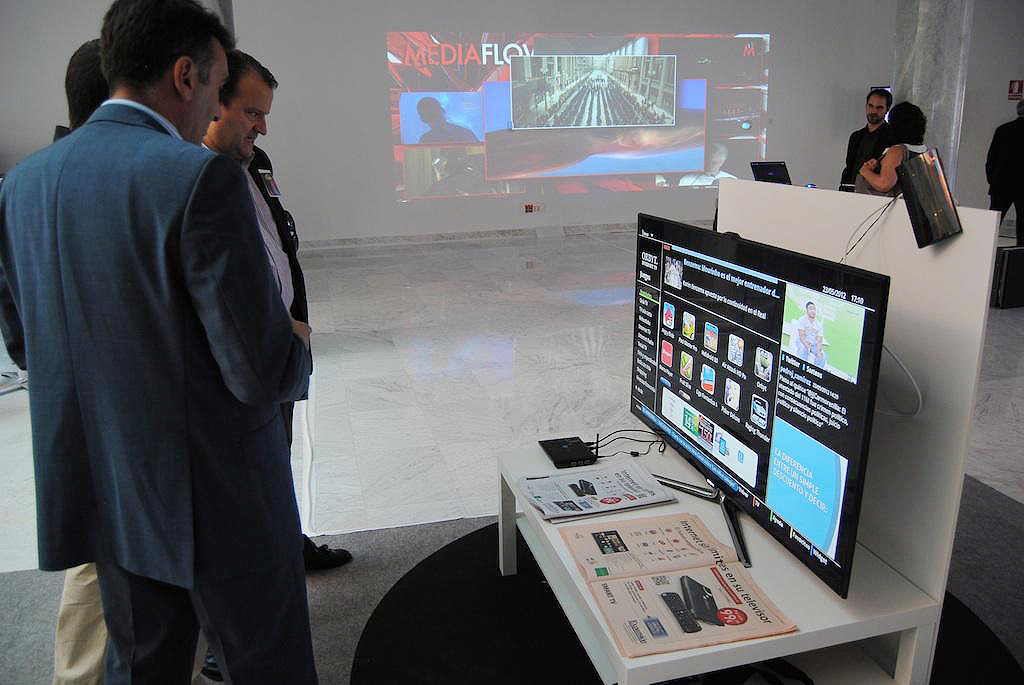 除了, en el showroom ha podido verse la oferta de MediaFlow, una herramienta de transcodificación de vídeo fácil de usar para preparar el contenido de vídeo; y Orbyt TV, un avanzado adaptador equipado con Android 2.3 -可实现的 4.0- desarrollado por el diario El Mundo con el que se podrá transformar cualquier televisor en una pantalla inteligente. Orbyt TV se conecta a Internet a través de Wi-Fi, es completamente silencioso y permite ver la televisión en un pequeño recuadro mientras se navega por el menú. Fácil de manejar como un teléfono móvil, Orbyt TV incluye un mando con el que es posible controlar las aplicaciones y el navegador de forma intuitiva. Basta con mover el mando en el aire, para seleccionar los diferentes elementos en pantalla. 除了, integra un sintonizador de TDT-HD con soporte para grabación en su memoria interna o en tarjetas de memoria externas.