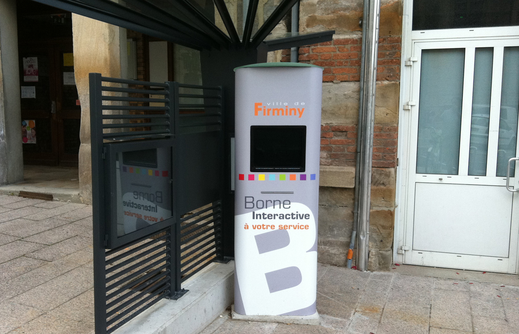 原子媒体, 互动信息亭制造公司, 定制支付终端和多媒体支持, ha instalado en la ciudad francesa de Firminy un kiosco interactivo de exterior para la gestión de documentos administrativos.