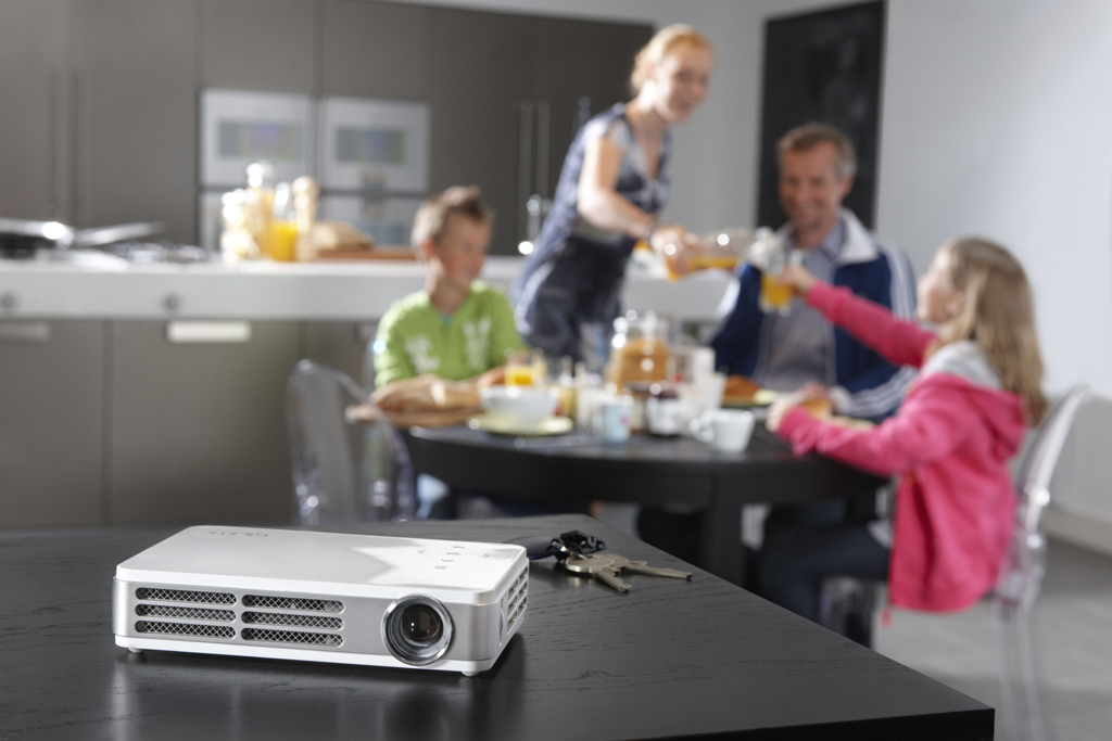 Desde el punto de vista de ahorro en el consumo de energía, las proyecciones con tecnología LED no solamente son más eficientes comparadas con las de la mayoría de proyectores que emplean lámparas tradicionales, sino que la precisión y fidelidad de los colores lo consigue la tecnología LED emitiendo luz en las tonalidades requeridas, e incrementando la saturación del color en lugar de emplear filtros. En relación a la calidad de imagen, Qumi tiene una resolución nativa WXGA (1280 x 800), 也就是说, de alta definición “HD Ready”, un ratio de contraste 2500:1, 500 lumens de brillo y está preparado para soportar proyecciones en 3D.