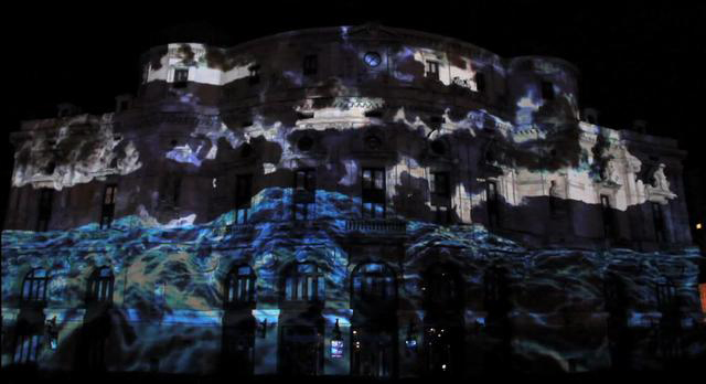 La productora barcelonesa Perla28 ha realizado un espectacular mapping sobre la fachada del Teatro Arriaga de Bilbao en el marco de la cuarta edición de la ‘Noche Blanca’ de la capital vizcaína, un evento cultural que incluye más de una decena de espectáculos de música, animación y artes escénicas.