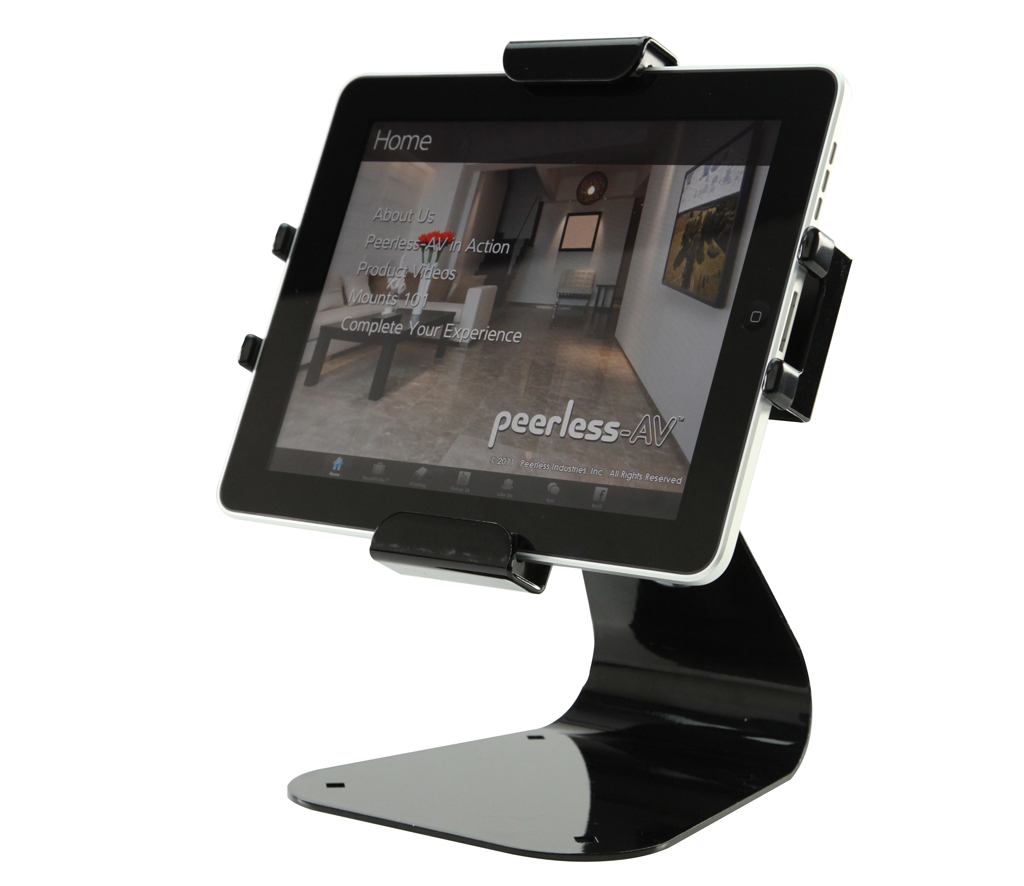 Chad Gebhardt, gerente de producto/proyecto de Peerless-AV, 已表明: “Nuestros soportes universales cuentan con un diseño limpio y discreto que permite que la tecnología sea el punto focal. Está diseñado para sujetar y colocar casi cualquier tablet incluyendo el Samsung Galaxy y el iPad de Apple. Tanto el 200 像他一样 400 pueden ser convertidos en productos seguros con hardware resistente al robo, lo que es ideal para clientes que necesitan los dispositivos en configuraciones comerciales de uso intensivo o de demostración”.