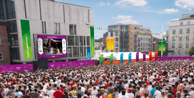 Los Juegos Olímpicos de Londres 2012 van a ver cómo los fans de todo el país disfrutan de la acción y animan a los atletas a través de las 22 pantallas gigantes que la BBC ha instalado en los centros urbanos de otras tantas ciudades del Reino Unido.