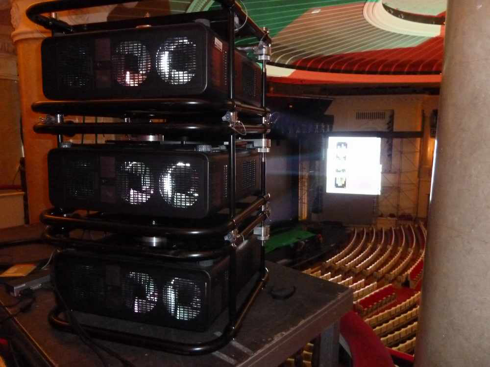 Para realizar esta proyección sobre la cúpula, la compañía Wizja planeó la instalación de doce unidades de proyectores de 20.000 lúmenes justo en el medio de la audiencia. Los factores técnicos clave que había que superar eran: