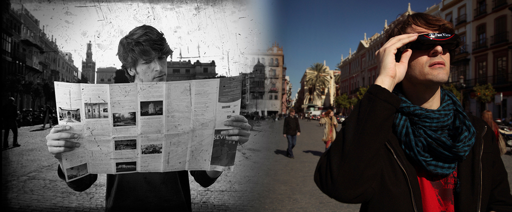 塞维利亚公司 尖塔文化服务 开发了“过去的观点”项目, 展望未来, 它由一个眼镜形状的便携式设备组成,再现了历史时期塞维利亚的某个场景,并模拟了当时人物的风俗习惯. 这些图像附有音频,向用户解释他们所看到的内容, 并包括, 参观者与那个时期的人物互动, 引导您并显示您所看到的所有细节, 成为历史的一部分并沉浸在过去. 这些虚拟重建使我们能够了解空间是什么样的 “在过去的时代” 全球, 因为它的范围从建筑娱乐到角色 “穿着当时的风格”.