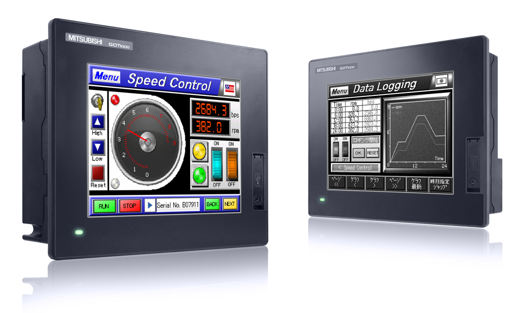 三菱电机 ha ampliado su serie de pantallas HMI GOT1000 con la nueva unidad de control GT14, que sienta nuevas pautas de rendimiento en el segmento medio de las unidades de control de pantallas táctiles. La unidad GT14 mide 5,7 pulgadas y está disponible tanto con una pantalla en blanco y negro o en color con una resolución de 320×240 像素. Las características y las funciones de los nuevos modelos aumentan la flexibilidad y el rendimiento del sistema de control conectado. La pantalla TFT en color ofrece 65.536 colores y ofrece así, en comparación con las versiones tradicionales de 256 colores de esta gama re precios, una imagen especialmente clara y con buen contraste. Para la variante en blanco y negro se empleo una pantalla STN con 16 escalas de grises. Las dos variantes están equipadas con toda una serie de características interesantes, como la iluminación de fondo LED de larga duración, funciones táctiles analógicas, puerto USB en la parte frontal, slot para tarjetas de memoria SD, parte frontal con la clase de protección IP67f, y puerto Ethernet.