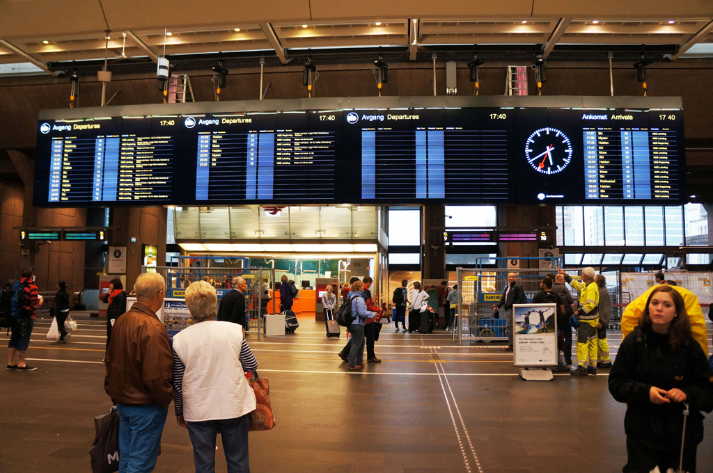 公司 GDS 显示器 在奥斯陆中央车站安装了欧洲最大的光学增强液晶视频墙, 挪威首都最繁忙的火车站. 新G-Wall的表面积几乎为 60 平方米,由 100 TFT液晶显示部件 46 英寸作为一个单位使用. 屏幕之间的窄边框确保完美的远距离观看和快速阅读而不会中断. 除了, 新的数字信息板允许 Jernbaneverket (联合BV), 负责铁路基础设施的机构 挪威, 根据情况轻松调整内容.