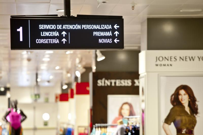 El Corte Inglés ha implantado soluciones de cartelería digital en sus centros comerciales, después de la realización de estudios de valoración, con el objeto de aprovechar las ventajas que ofrecen este tipo de dispositivos y cubrir los aspectos antes mencionados además de crear circuitos publicitarios para ofrecer a las marcas de los productos en venta, que hasta ahora habían realizados con cartelería convencional estática.