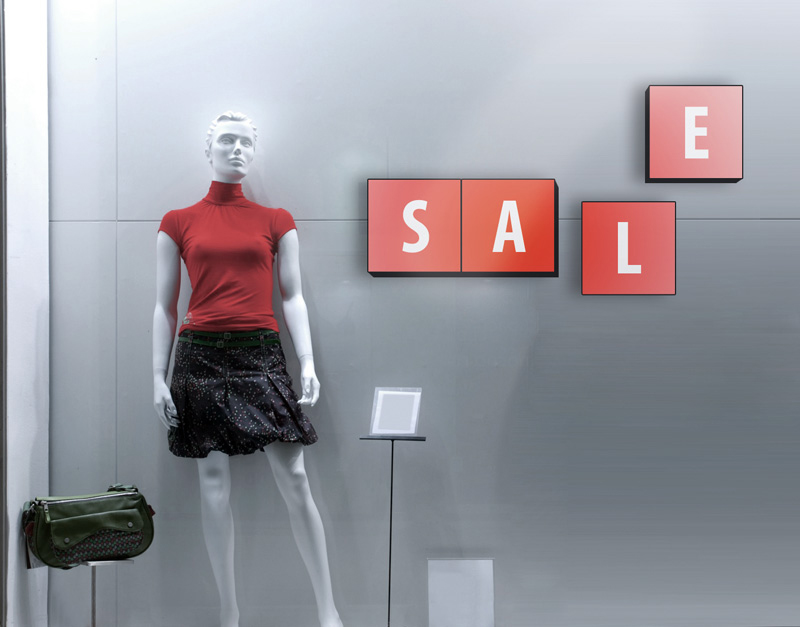 例如, se pueden instalar squareTILES individuales en un patrón de desplazamiento, o montados alrededor de una esquina, con el fin de lograr un efecto de imagen llamativo. El escalador integrado y la funcionalidad de matriz proporcionan la posibilidad de realizar arreglos inusuales. Estas características permiten el ajuste de la imagen fácilmente en cualquier posición. La retroiluminación LED directa proporciona una iluminación muy uniforme de las imágenes mostradas. La alta resolución de 960×960 píxeles y un ángulo de visión amplio no sólo contribuyen para cumplir con los altos estándares profesionales de aplicaciones de señalización digital creativa, sino también para redefinirlas.
