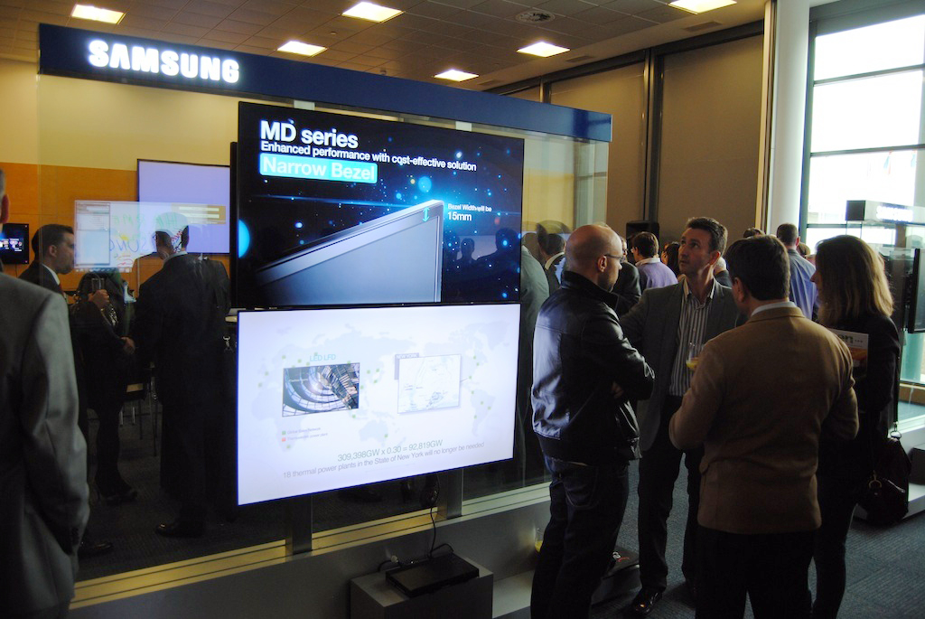 En pantallas interactivas, Samsung va a cambiar su line-up, apostando por una lámina táctil que se integra en el monitor tanto en la serie DE como ME. En fomatos hasta 55 pulgadas Samsung sustituirá la tecnología tipo red por un avanzado sistema de barrido de ondas que otorgará una mayor cobertura en las esquinas. En formatos superiores a los 65 pulgadas seguirá empleando la tecnología óptica con cuatro cámaras infrarojas.