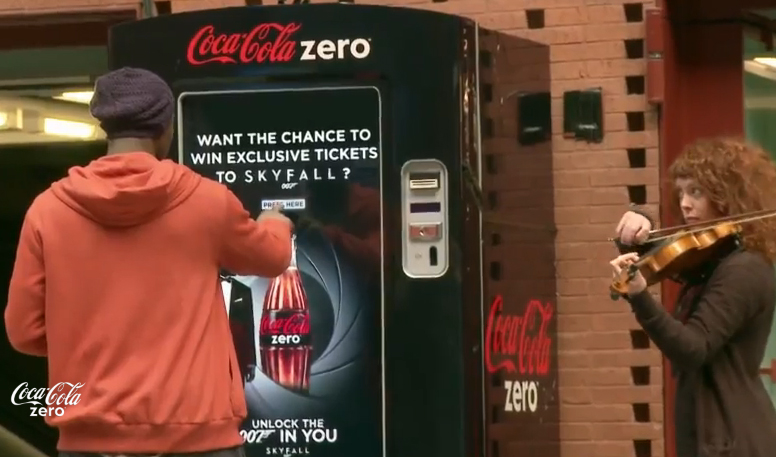 Coca-Cola instaló una máquina de refrescos en la estación de tren de la ciudad belga de Amberes que invitaba a los sedientos pasajeros a emular al agente secreto 007 y formar parte de una misión secreta para conseguir entradas exclusivas para el pre-estreno del nuevo filme de James Bond, ‘Skyfall’.