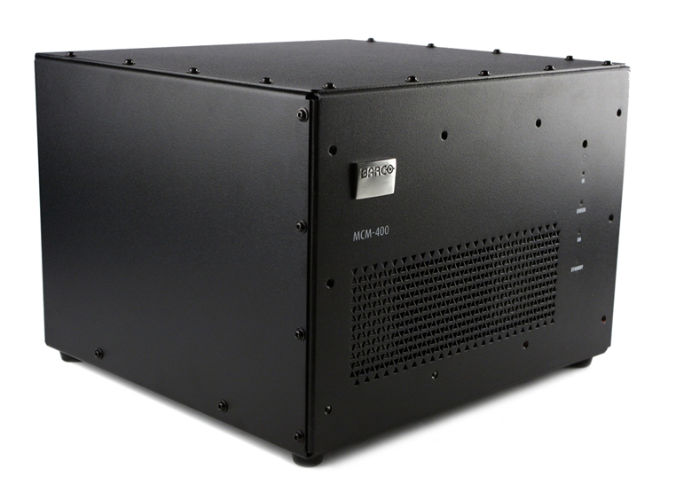 Barco ha agregado a su catálogo de productos el MCM-400, un componente de hardware externo que permite la corrección geométrica, la corrección de color y la mezcla electrónica en la serie de proyectores Galaxy 4K, ayudando a obtener un gran rendimiento en los proyectores de simulación de gama alta del fabricante belga y permitiendo varias configuraciones multi-canal con múltiples proyectores 4K.