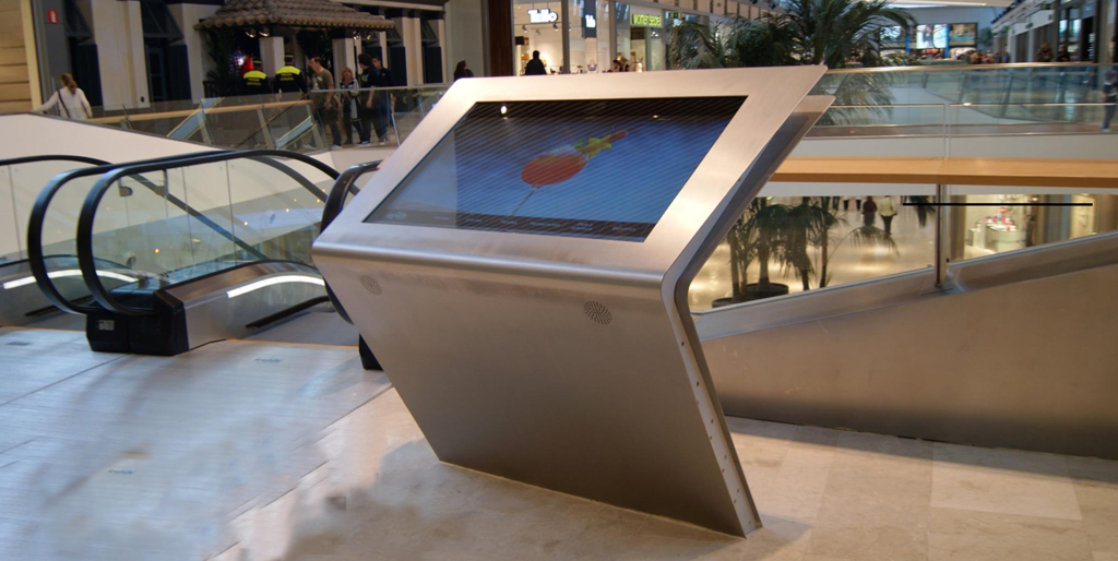 Estos directorios de Puerto Venecia, de un diseño vanguardista en acero inoxidable, incorporan unas pantallas de Alta Definición de 42” con lámina táctil capacitiva integrada en el cristal frontal. Se ha tenido en cuenta las necesidades de las personas con discapacidad y para ello se han adaptado cuatro de los diez directorios, tanto en la altura como en el tamaño de los iconos y textos.