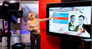 La BBC recurrió a una pantalla táctil Giant iTab de 70″ suministrada por el especialista en soluciones display interactivas Touch2View para mostrar los resultados de las elecciones a la presidencia de EE.UU. en el programa especial sobre los comicios emitido por la cadena de TV británica.