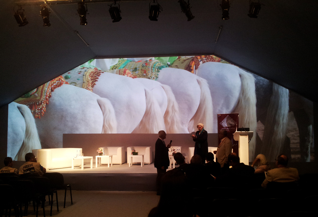 日子之间 17 y 21 十月, 摩洛哥杰迪代市举办了第五届年度马术表演, 在 Princesa Lalla Malika 赛马场举办的一场展会,使用两台科视Christie Roadster S+20K 投影机和一台科视 Christie Vista Spyder 视频处理器为活动的会议和展览提供投影.
