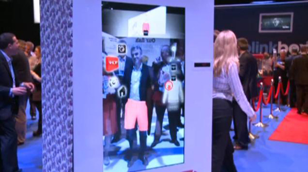 就你而言, “虚拟镜子”’ 通过普通镜子叠加在数字标牌屏幕上. 用户在镜子中看到自己的倒影,并可以尝试商店产品的数字版本, 混合和匹配虚拟产品,看看它们是否适合您.
