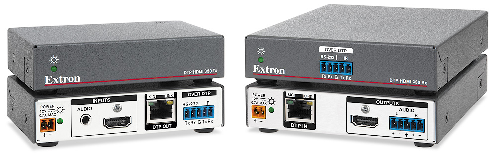Extron 电子 ha incorporado a su portfolio el DTP HDMI 330, un transmisor y receptor para la transmisión a larga distancia de HDMI, audio y RS-232 bidireccional y señales de control IR a hasta 100 metros a través de un único cable CATx. El extensor compatible con HDCP provee un medio para extender HDMI con audio multicanal integrado desde dispositivos equipados con HDMI. 除了, el DTP HDMI 330 acepta señales de audio estéreo analógicas y las digitaliza para la transmisión simultánea por el cable de par trenzado. La carcasa compacta y la capacidad de alimentación remota hacen al DTP HDMI 330 adecuado para extender HDMI, audio y control bidireccional en entornos de espacio reducido.