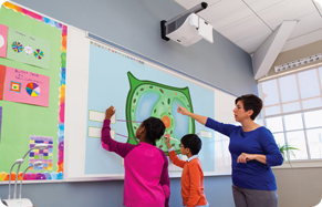 Los profesores pueden crear rápida y fácilmente lecciones multimedia y luego mostrar las lecciones, gráficos e imágenes en un tablero de borrado en seco o cualquier otra superficie plana. Las imágenes proyectadas por el software MimioStudio pueden ser manipuladas por los estudiantes utilizando un bolígrafo o un lápiz interactivo. Una opción de doble lápiz permite que dos estudiantes interactúen con la misma imagen al mismo tiempo, aumentando la capacidad de los profesores para incorporar aprendizaje colaborativo y enseñanza en grupos pequeños en sus aulas.