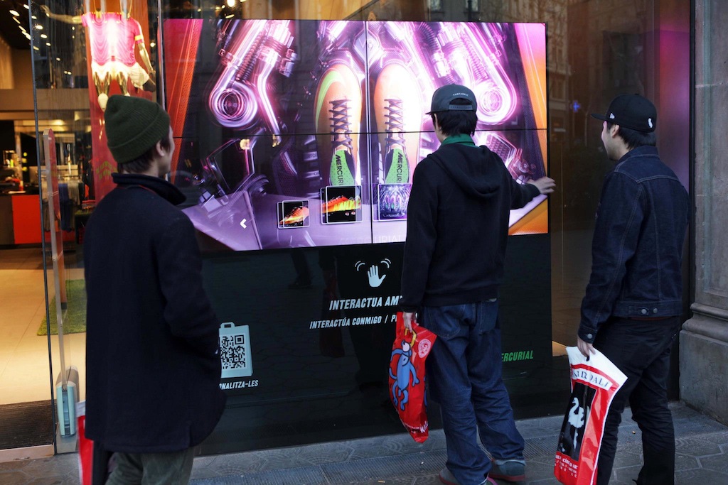 Las agencias Primer Impacto y Lateral Thinking han confiado en SayHi! y su distribuidor 艾科诺斯 para poner en marcha en el flagship de Nike en Barcelona un escaparate interactivo.