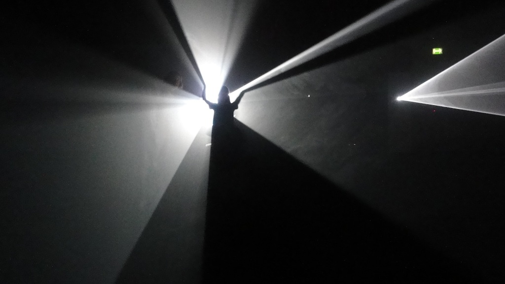 Como explica el propio McCall, “la lentitud de estas obras las hace diferentes: puedes pasar mucho tiempo en ellas; van cambiando y se puede ver la manera en la que se van transformando. Nunca se adelantan a la persona, sino que se mueven mucho más despacio”. 是的,好的, estas piezas no son realmente el ‘inicio’ de este espacio casi virtual hasta que se pasa por delante del proyector, ya que es entonces cuando los visitantes entran de lleno en los espacios volumétricos que crean lentamente las delgadas líneas blancas proyectadas.