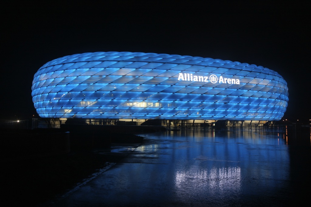El sistema de iluminación del estadio Allianz Arena de Munich, tanto en el terreno de juego del FC Bayer como en los salones de trofeos y exposiciones del club, lleva el nombre del fabricante de iluminación alemán 欧司朗, cuya sede está en esta misma ciudad.