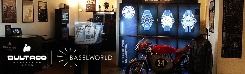 La marca muestra esta innovación en el salón mundial de relojería y joyería BaselWorld 2013, 庆祝直到 2 de mayo en Basel (瑞士人), con un stand que combina sus innovaciones en relojería con las últimas tecnologías, tales como un mostrador de pantalla táctil, un videowall sincronizado, tablets con la tecnología de realidad aumentada, y una pantalla trasparente que recrea un mundo submarino construido con engranajes y piezas de los productos Bultaco Watches.
