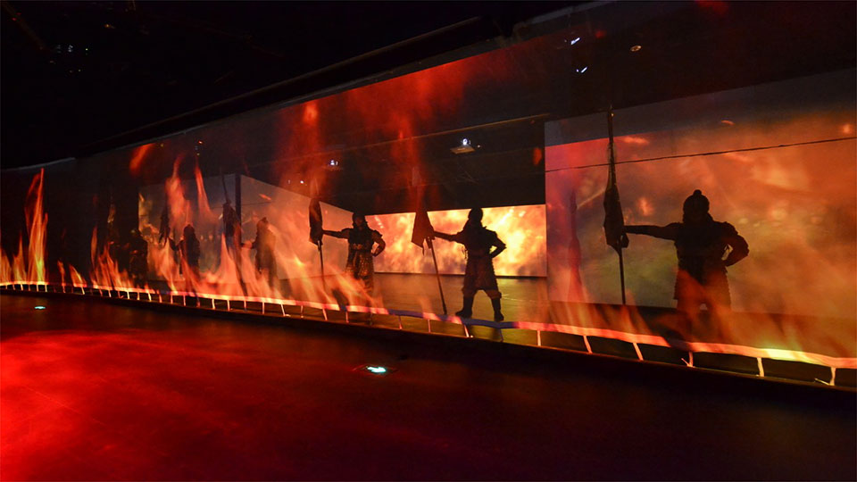 Las pantallas están sincronizadas con actores en vivo, luz y música para ofrecer al visitante una experiencia única en un recinto construido específicamente para el proyecto, adyacente al histórico Hua Qing Palace.