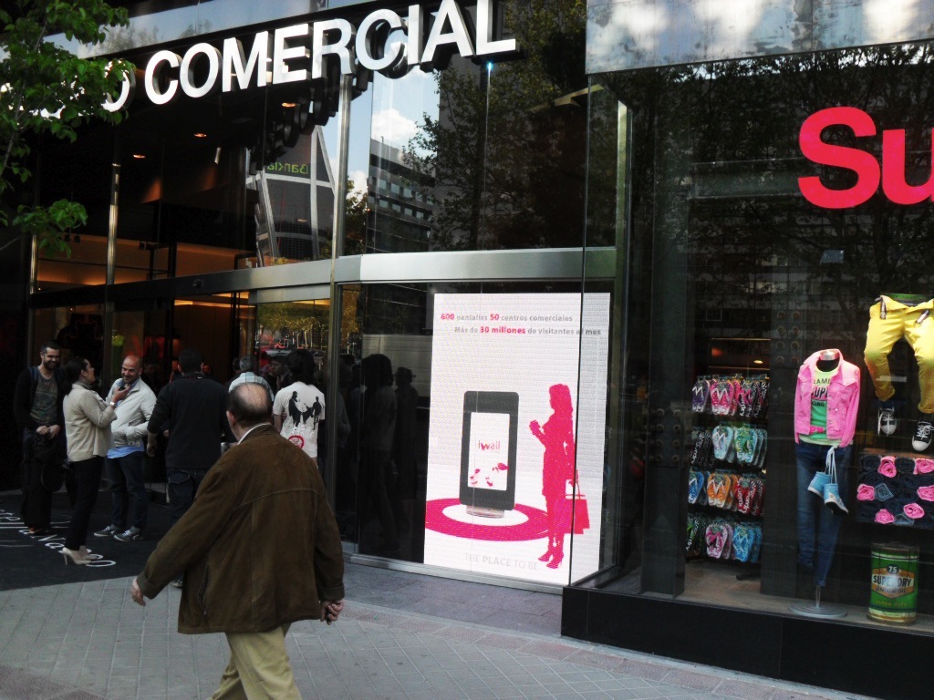 数字标牌公司 爱墙在店里 继续扩大在西班牙主要购物中心的业务, 这次在最近落成的卡斯特拉纳 200, 位于西班牙首都的金融中心.