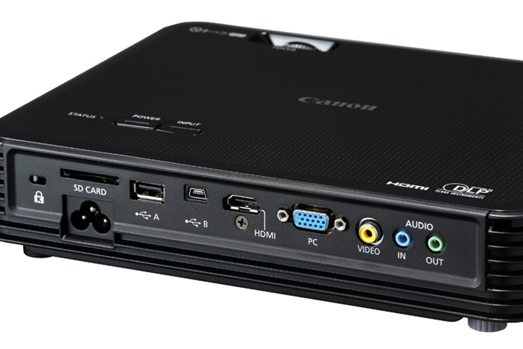 使用寿命为 20.000 小时, este equipo de Canon proporciona 500 lúmenes con una resolución WXGA (1280 x 800), 对比度为 3000:1 y una tasa de tiro de 1,2:1, lo que permite conseguir un tamaño de pantalla grande aunque la distancia de proyección sea corta. 此外, esta equipado con dos altavoces estéreo de 2,5 vatios y puede ser utilizado para proyectar en cualquier superficie.