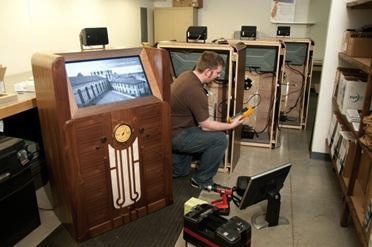 Cada uno de los kioscos interactivos dispone de un temporizador interno que inicia o apaga el equipo en el momento adecuado, y los contenidos de vídeo y archivos de datos se van actualizando paulatinamente a medida que se descubren nuevas historias de la prisión.