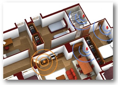该系统通过位于家中不同地点的无线传感器来检测老年人是否遇到任何问题。, 分析用户习惯 (是否有动静, 如果你还没去过厨房, 如果他还没有回家,...并将信息传输到控制中心.