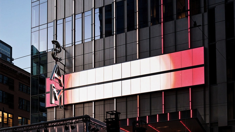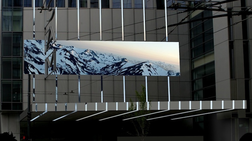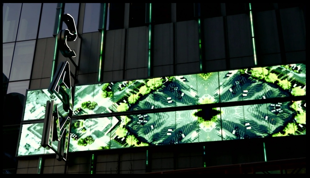 Ambos sistemas, la pantalla y las tiras de Led ofrecen una combinación de imágenes de vídeo, fijas y móviles, de paisajes urbanos de Seattle, superficies y objetos filmados por Aitken y su equipo de producción.