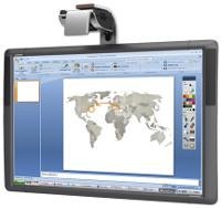 La pizarra interactiva ActivBoard 500 Pro de 普罗米修斯 ofrece una interacción más natural para cuatro usuarios simultáneamente y mejoras de la tecnología multitouch, así como opciones de sistema de sonido integrado.