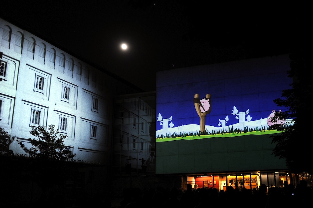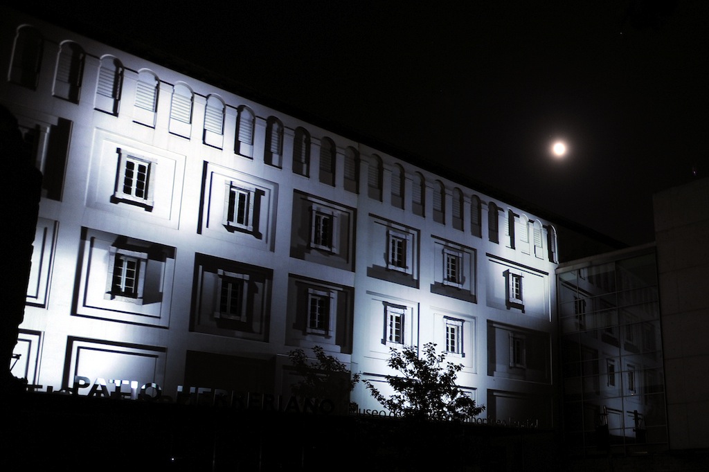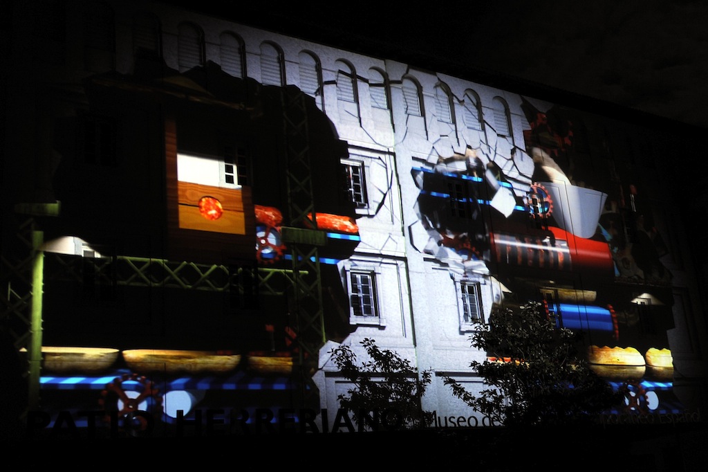 Las fachadas principal y lateral del Patio herreriano – museo de Arte Contemporáneo de Valladolid se han transformado durante TAC 2013 en un tapiz gigante “en el que se proyectan animaciones generadas en dos dimensiones, que se fusionan con espectaculares efectos de videomapping 3D de enorme impacto visual, en la que el espectador percibe los edificios como arquitecturas en movimiento”, explican desde la productora.