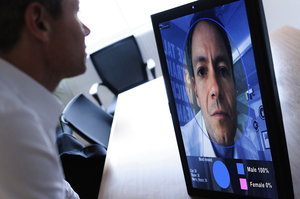 DooH 媒体机构 Amscreen 已将 OptimEyes 面部检测技术整合到其商业数字标牌网络的部分屏幕上, que identifican al usuario por edad y sexo.