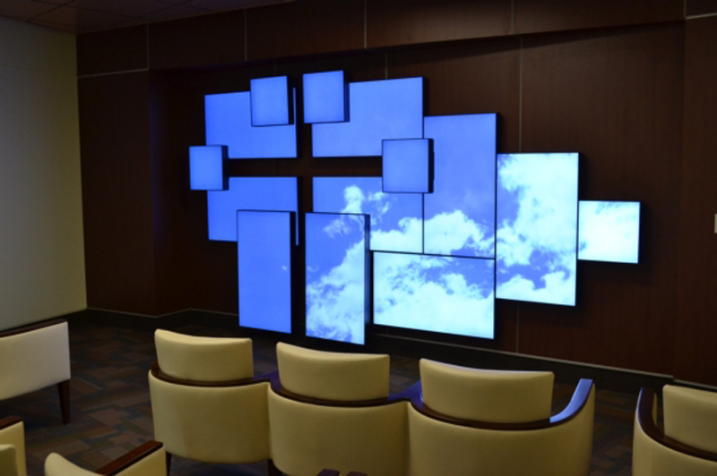 Florida Hospital considera la tecnología como un elemento esencial, como una herramienta para atender a pacientes y familiares. Su más reciente proyecto, en su centro ubicado en Wesley Chapel (佛罗里达), ha sido la instalación en la capilla de un videowall con el sistema 平面 马赛克. Su objetivo es aliviar el estrés de los pacientes y las familias.