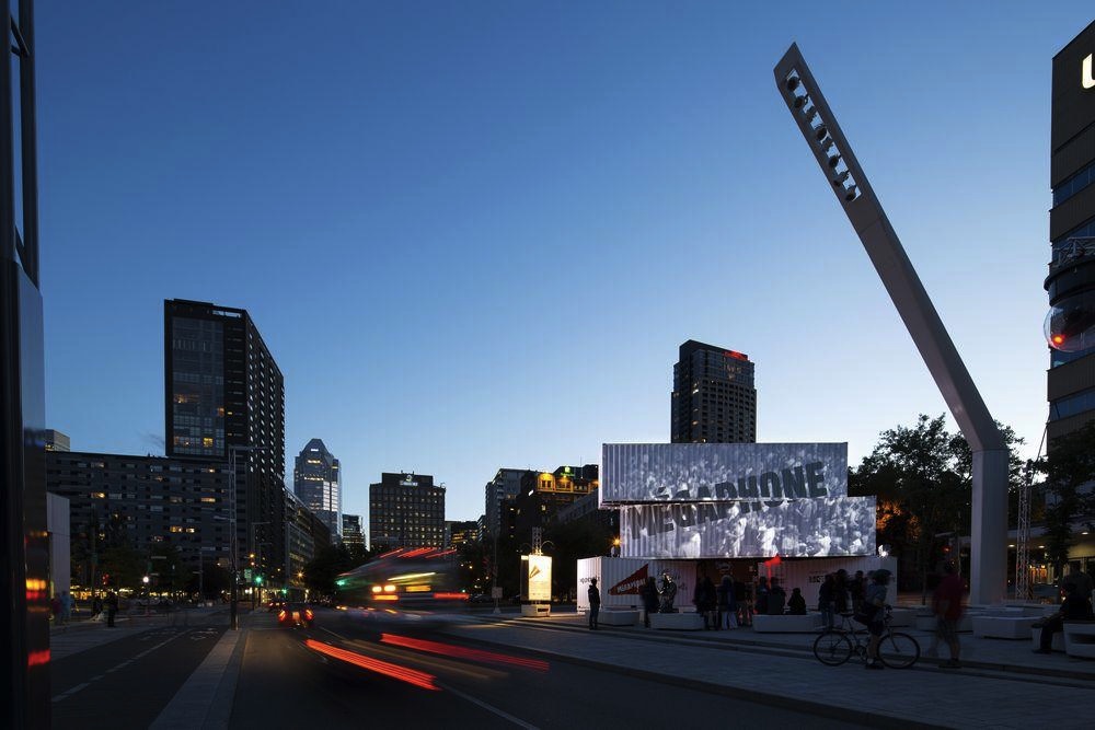 En un momento en que las ciudades están buscando nuevas maneras de dinamizar sus calles y espacios públicos con nuevas tecnologías, la instalación interactiva Mégaphone realizada en la ciudad canadiense de Montreal invita a ciudadanos y visitantes a reunirse en el centro de la ciudad para explorar el lado festivo de hablar en público e interactuar.