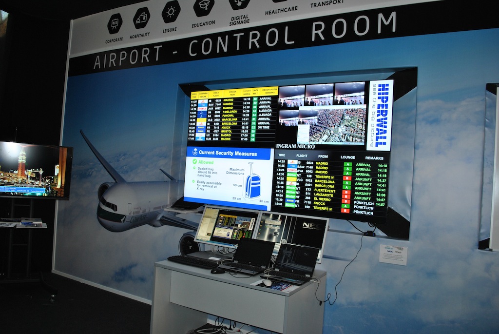 En el área para transportes o industria, la propuesta de IMagine se centra en las soluciones videowall, en este caso en el Hyperwall de NEC 显示解决方案, “que permite introducir varias fuentes diferentes y actuar con ellas, gracias al software y tarjetas OPS, desde un único punto de visualización, que esta pantalla, sin depender de grandes matrices de vídeo, sino sólo del software, lo que supone un enorme ahorro de costes, principalmente en entornos críticos, 24×7, que tienen que gestionar múltiples fuentes continuamente”.