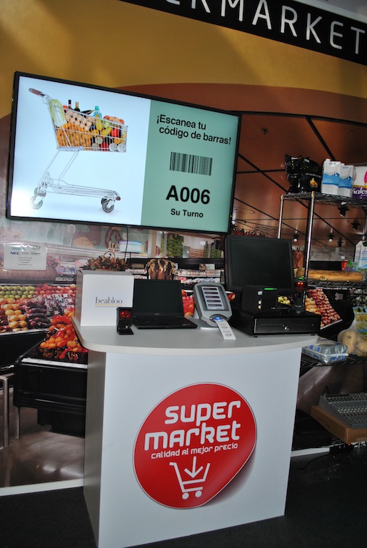 La solución para el área de alimentación se basa también en el software de gestión de contenidos CMS y en el player de Beabloo, en combinación con una pantalla de digital signage de NEC Display (在这种情况下 55 英寸) con soporte de 鸟类 y en el sistema de gestión de colas de Q马蒂克. “La solución -explica Alex Rincón- se basa en la integración de sistemas con el software CMS, con la integración de la base de datos del cliente con todos los códigos de sus productos, de manera que cuando un consumidor coge un producto, la pantalla muestra también productos asociados o de venta cruzada o promociones, a lo que se suma la gestión de colas para que su estancia en el establecimiento sea cómoda. Hemos realizado soluciones paquetizadas para ayudar al pequeño comercio a incrementar sus ventas y optimizar sus recursos”.