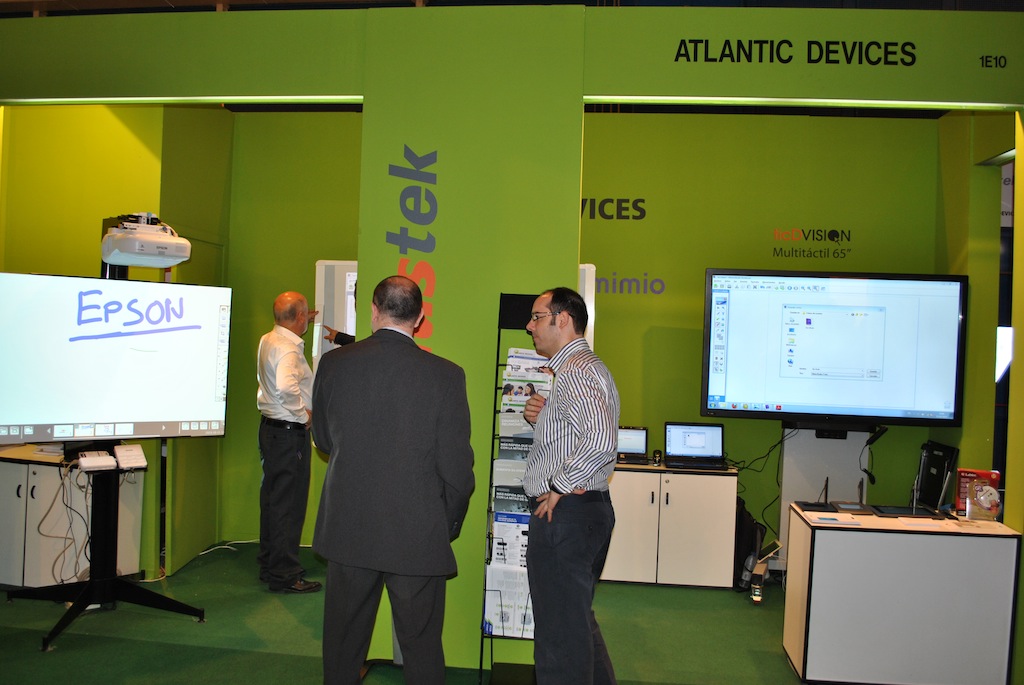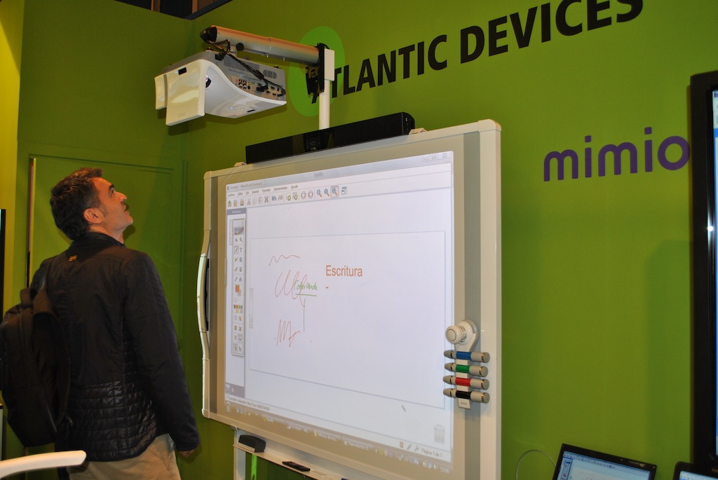 Mimio 的新型交互式 WXGA 投影仪也在 SIMO Education 的 Atlantic Devices 展台上脱颖而出, 一个简单的装配系统 (只需将其连接到计算机即可), 因此教师可以将多媒体教育内容投影到任何平面上 (传统的黑板甚至墙上).