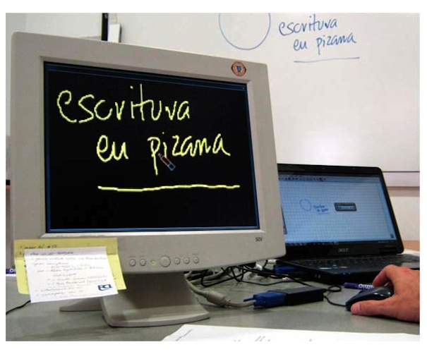 作为一个特殊功能, 该投影仪提供双笔选项, 允许两个学生同时在图像上与同一个图像进行交互, 每个人都拿着他的铅笔.