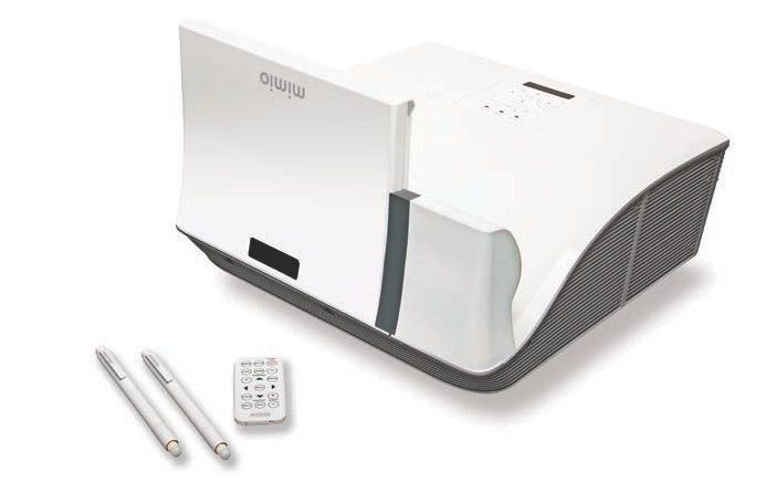 超短距离, MimioProjector 提供宽高比 16:10 (也支持 4:3 y 16:9), 将图像投影到 100 英寸 (254 厘米。, 和互动区 75 一个 115 英寸对角线) 亮度为 2.800 WXGA 分辨率下的流明 (1.200×800) 和对比 3.000:1.