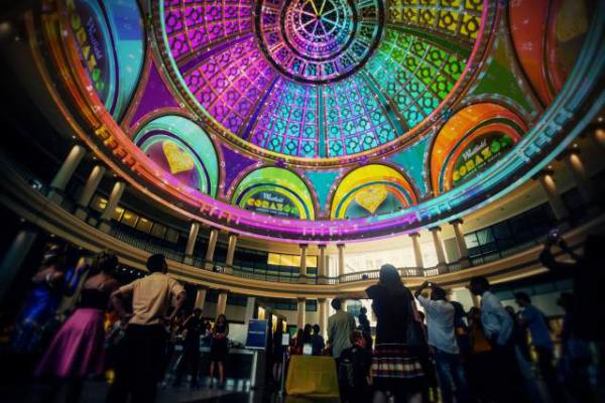 La tecnología siempre ha estado presente en el diseño de este edificio y el digital signage también ha sido un elemento clave. 然而, uno de sus mayores atractivos es el proyecto que se ha realizado en su cúpula, una experiencia de mapping creada por 暗箱数码 y que utiliza los proyectores 克里斯蒂 Roadster S+20K DLP.