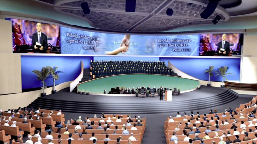 La Primera Iglesia Bautista de Dallas ha apostado por los proyectores de Barco para impulsar los vídeos que se proyectan en su videowall de 43.282 metros de ancho y que son vistos por los más de 3.000 miembros de la congregación.
