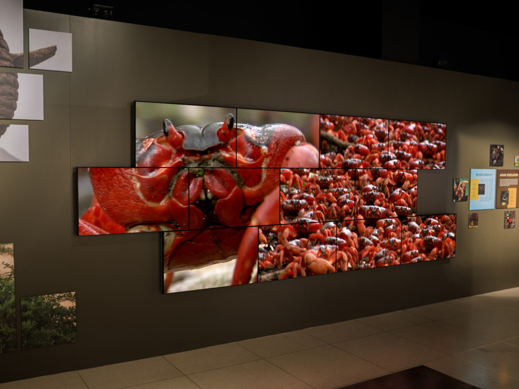 La instalación y diseño de este original videowall fue realizada por Avitecture, que creo un atractivo diseño para captar la atención de los visitantes. “Queríamos crear un original forma de presentar la naturaleza. En lugar de presentarlo en una caja rectilínea, optamos por una composición donde se destaca y acentúa la belleza lírica de cada escena” explica Thomas Oelberger, uno de los diseñadores de la exposición del museo. “Las herramientas de configuración que incorpora nos permiten cambiar los contenidos con gran sencillez. Podemos crear imágenes en alta resolución para los 12 paneles o hacerlo por partes. Nos permite una gran flexibilidad.”