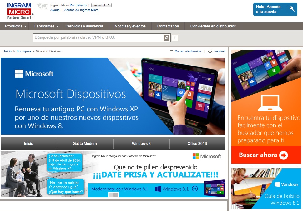 El mayorista Ingram Micro ha abierto un espacio exclusivo en su web para dispositivos de Microsoft, con el fin de ofrecer al canal un valor añadido en funcionalidades, información y desarrollo de aplicaciones para incrementar la rentabilidad de negocio.
