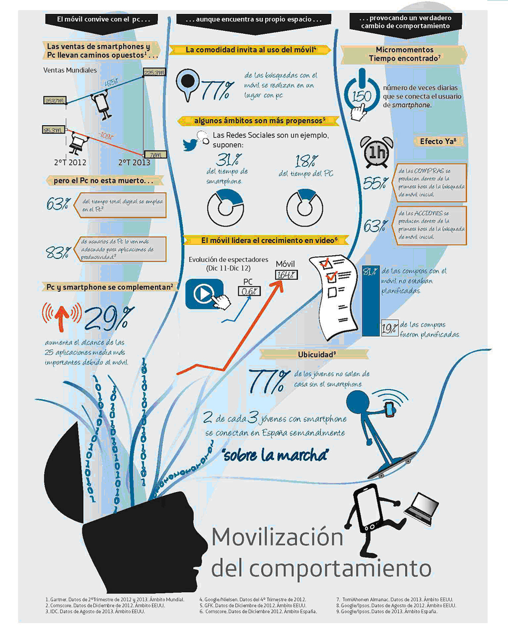 La segunda megatendencia es la movilización del comportamiento. La conexión en movilidad, cada vez más utilizada, hace que la banda ancha móvil sea el motor del avance de la Sociedad de la Información y sume 9,5 millones de nuevos usuarios en el último año. 除了, el móvil es consultado una media de 150 veces al día por usuario. “Esto hace que cambiemos nuestra forma de actuar en el día a día”.