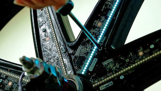 Wheelies se compone de una rueda que incorpora 53 LED conectados en los radios de sus ocho aspas. Su funcionamiento es similar al utilizado en las películas, con una serie de imágenes que se reproducen secuencialmente y en una rápida sucesión, con la diferencia de que en este caso se tiene que fijar en una posición exacta en cada aspa para que el LED defina la imagen o el vídeo de manera rápida.