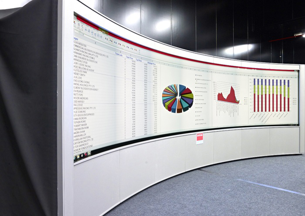 La tendencia hacia el uso de grandes cantidades de información (Big Data) para mejorar la toma de decisiones requiere de displays de mayor resolución lienzos para visualizar esta gran cantidad de datos de la manera más óptima. 这就是为什么, Barco ha desarrollado la línea OverView Seamless Videowall (OSV), un gran videowall curvo que combina las ventajas del uso de los cubos de proyección trasera (utilización 24×7, alta uniformidad y distancias de proyección corta) con el procesamiento avanzado de imágenes de Barco para crear un videowall panorámico sin fisuras. Esto significa que toda la información se muestra de la manera más eficiente, sin interrupciones que distraen en la visualización de los datos críticos.