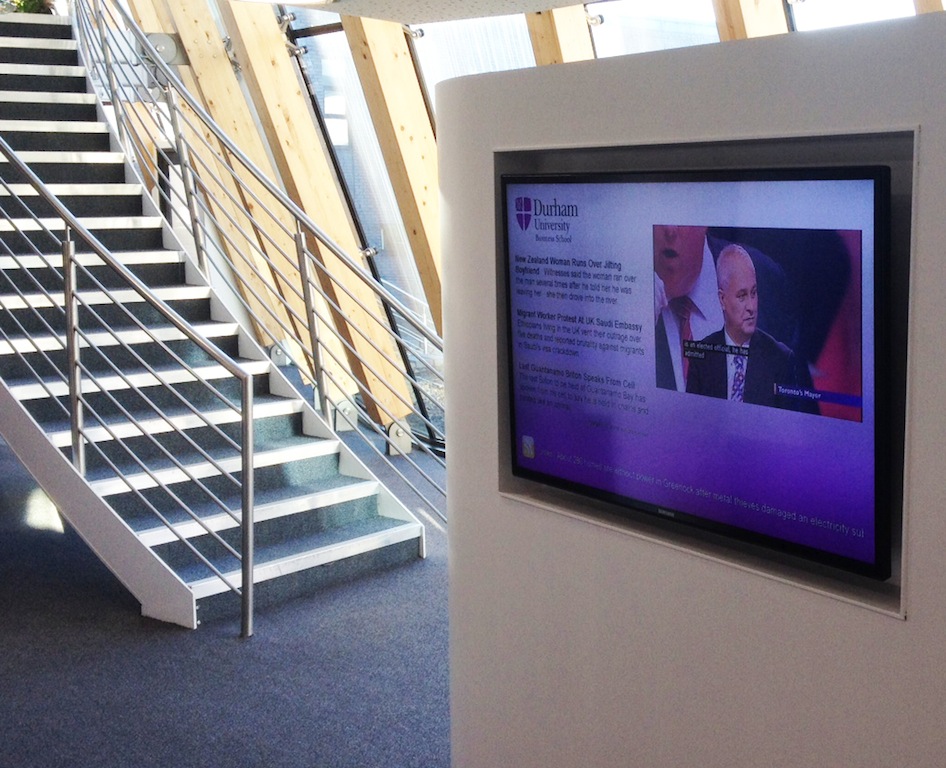 El histórico entorno de esta universidad, en el que se ubica la catedral y el castillo de Durham, declarados por Patrimonio Mundial de la Unesco, convive con naturalidad con las últimas tendencias del mercado en todos sus aspectos. Uno de ellos ha sido la apuesta por los beneficios que ofrece la tecnología se señalización digital como elemento de comunicación efectivo para todo el ecosistema educativo del campus.